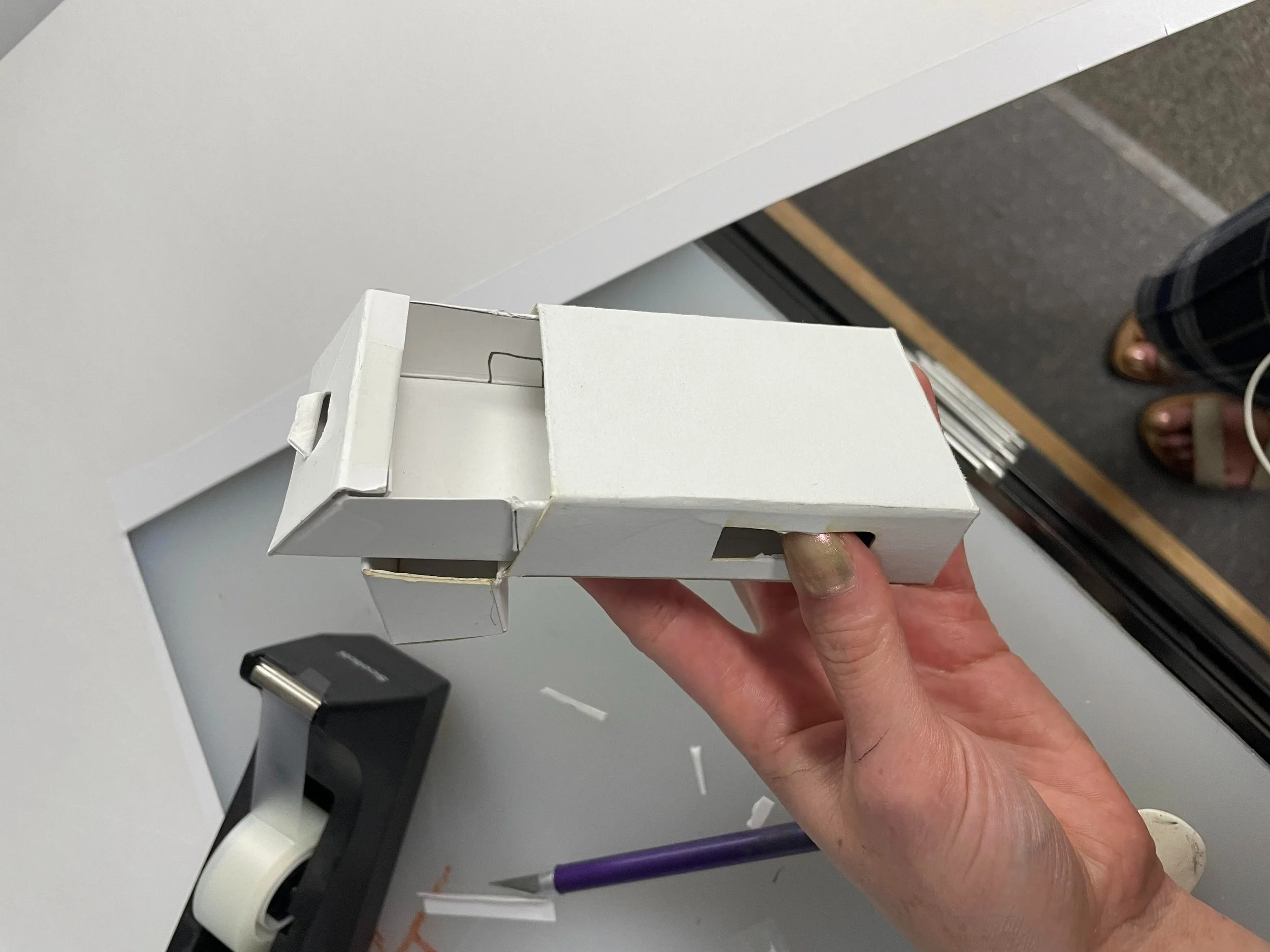 I was tasked to come up with a child-proof card stock box to hold marijuana products. The challenge was to only use card stock in the product with no added parts. To be considered ‘child-proof’, it has to have a two-step action unlocking feature.