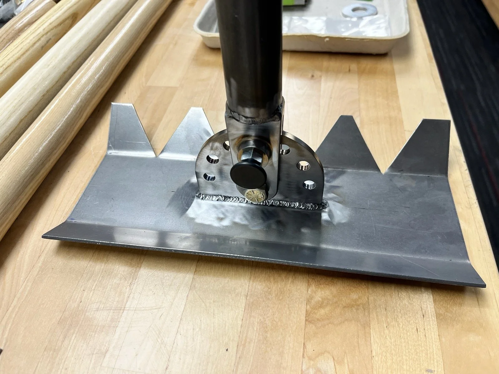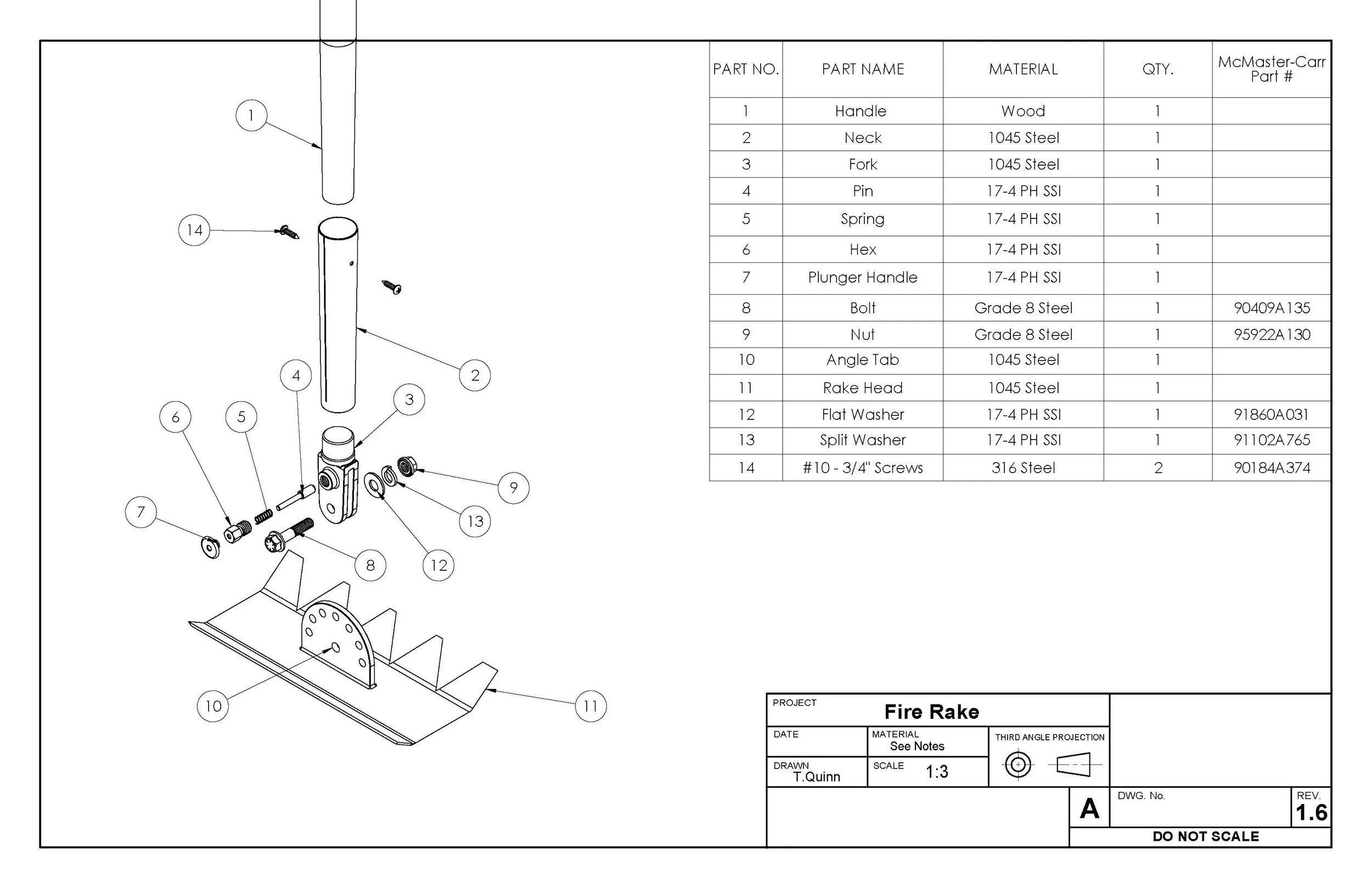 My Team and I were tasked with designing a rake for firefighting that is able to fold down flat and is easy to move the angle of the head. We had a rough prototype provided by the client and I reverse engineered it to get the general size and form down, but then designed it in CAD to have solid forms and manufacturing plans. We had to source materials and hardware for the final technical drawings used for manufacturing.