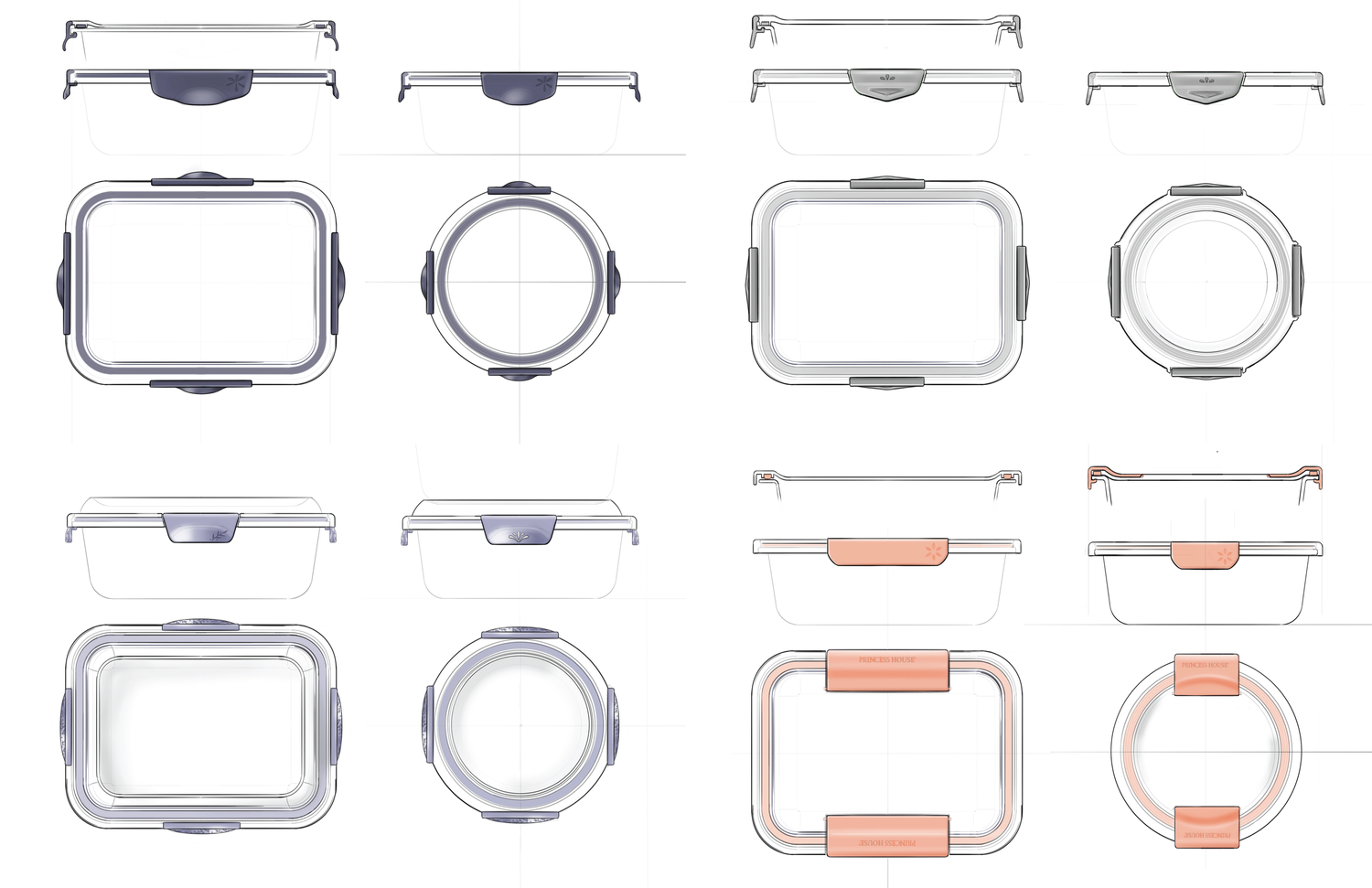 This client wanted to create a food storage container with design elements that are unlike any other out there. They asked for decorative handles that snap and have an airtight seal, while also having a textured pattern on the top surface.